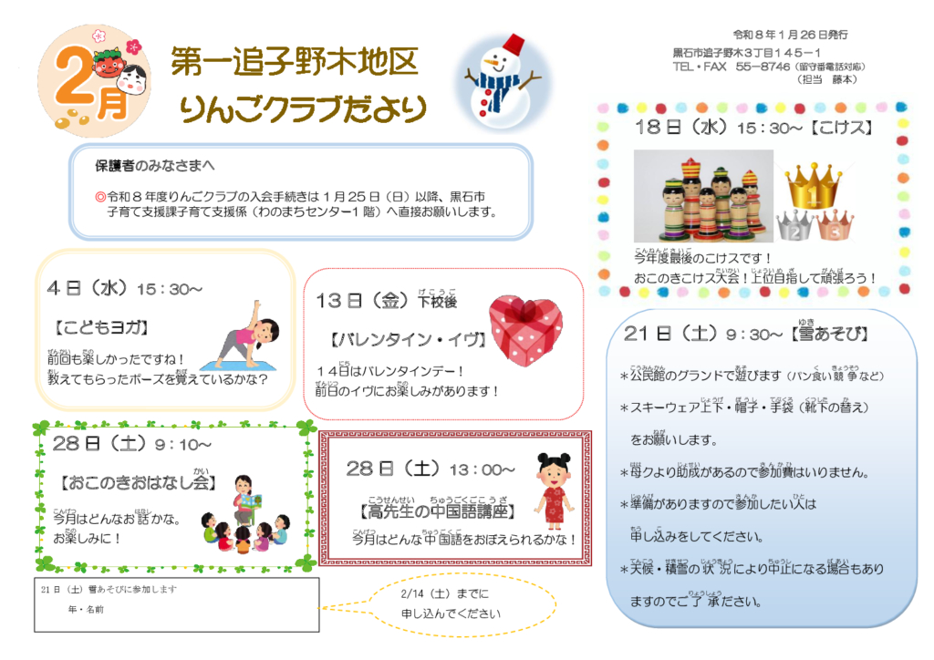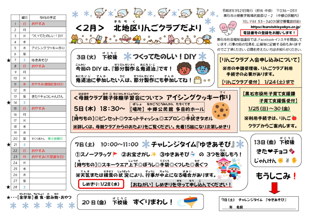 ~居場所づくり事業~「あすなろの森」広報くろいし掲載記事の訂正について