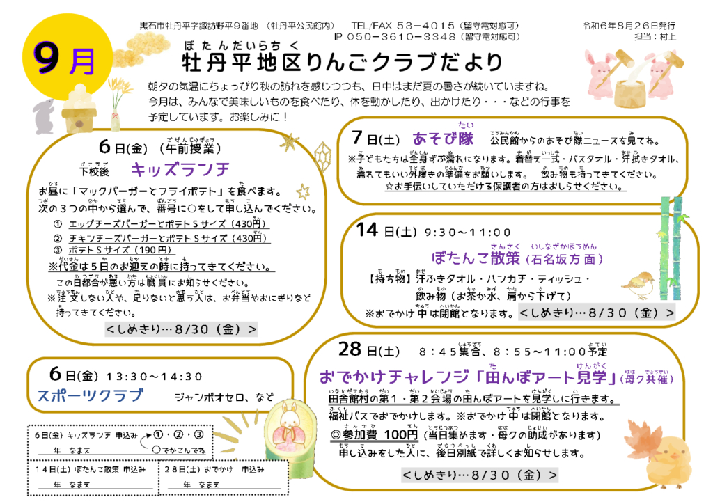 牡丹平地区りんごクラブだより令和6年9月号