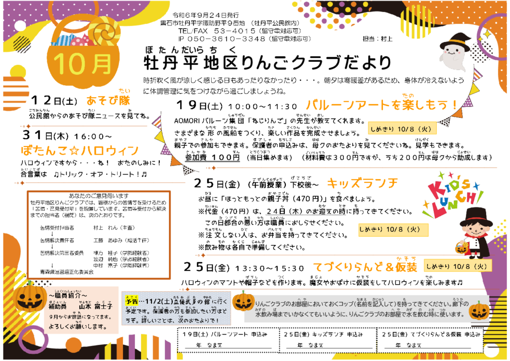 牡丹平地区りんごクラブだより令和6年10月号