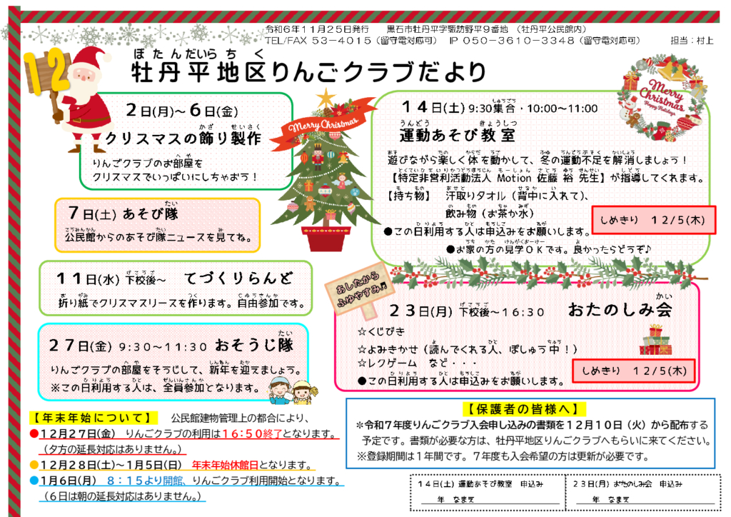 牡丹平地区りんごクラブだより令和6年12月号