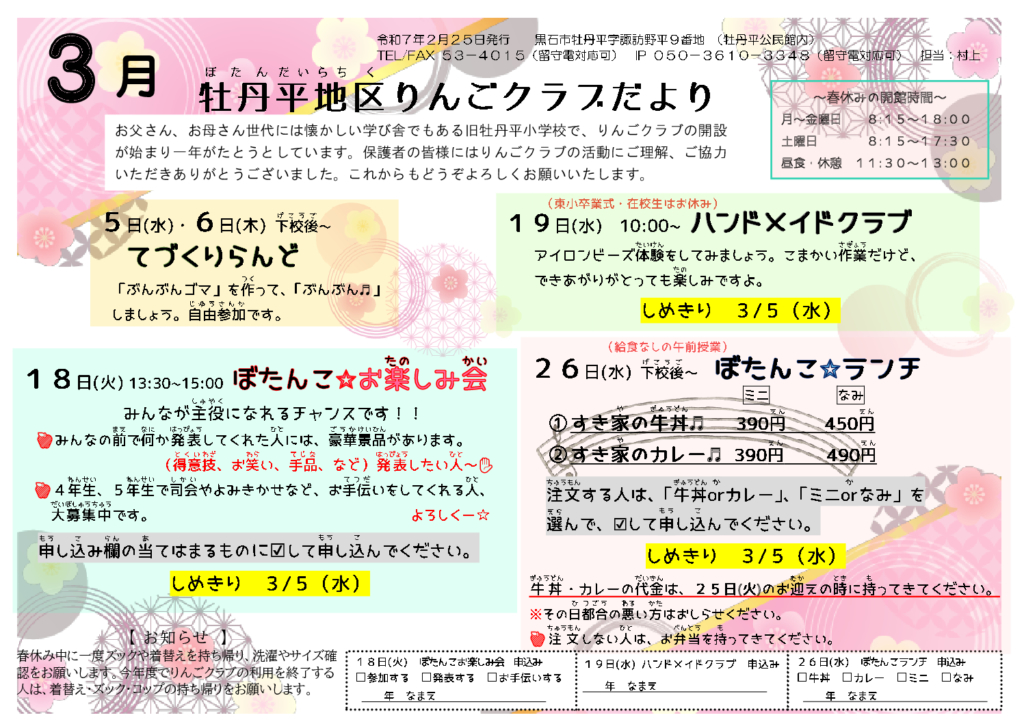 牡丹平地区りんごクラブだより令和7年3月号