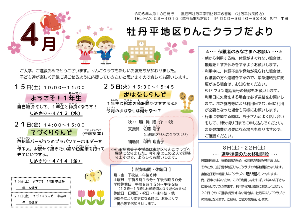 牡丹平りんごクラブだより 令和5年4月号