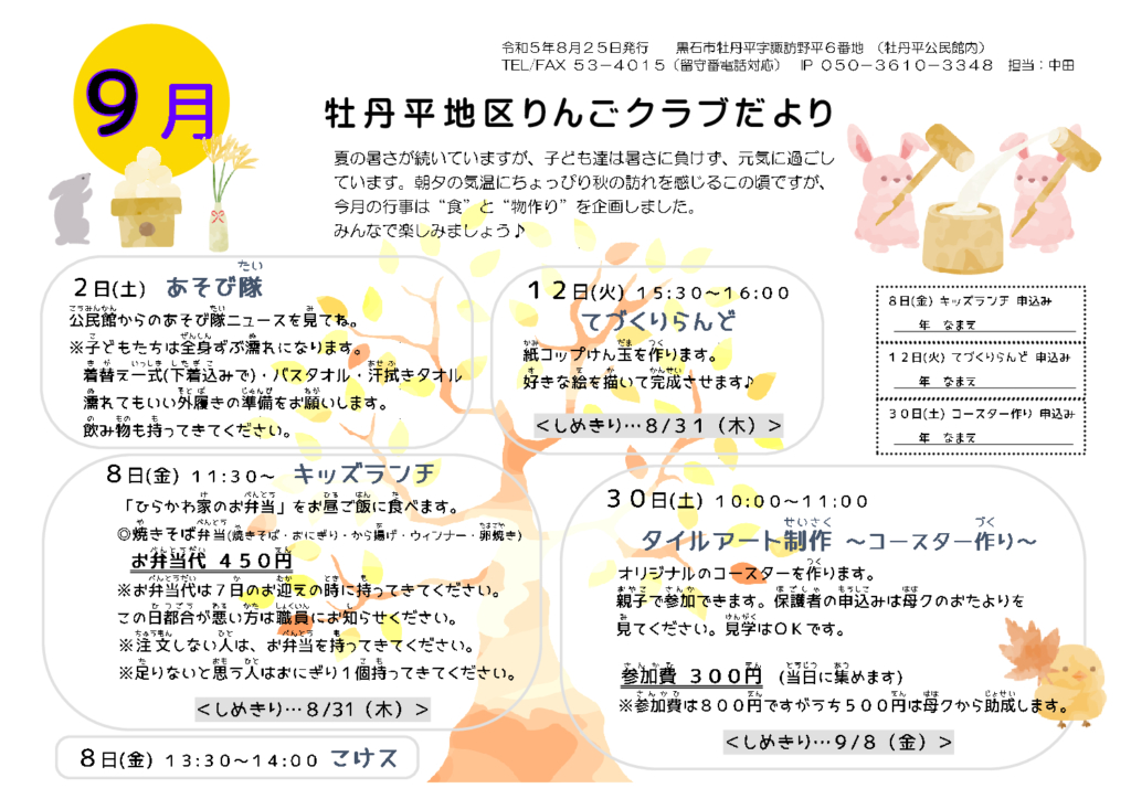 牡丹平地区りんごクラブだより令和5年9月号