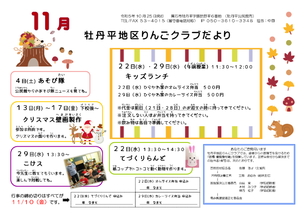 牡丹平地区りんごクラブだより令和5年11月号