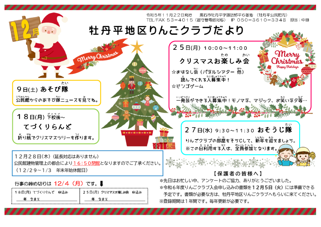 牡丹平地区りんごクラブだより令和5年12月号