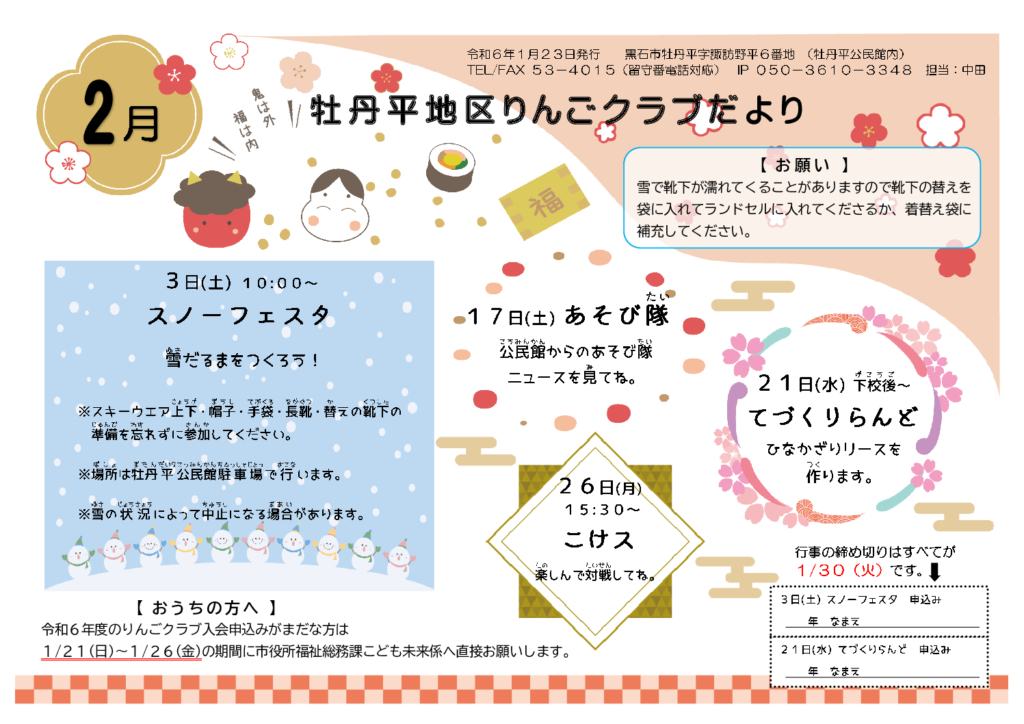 牡丹平地区りんごクラブだより令和6年2月号