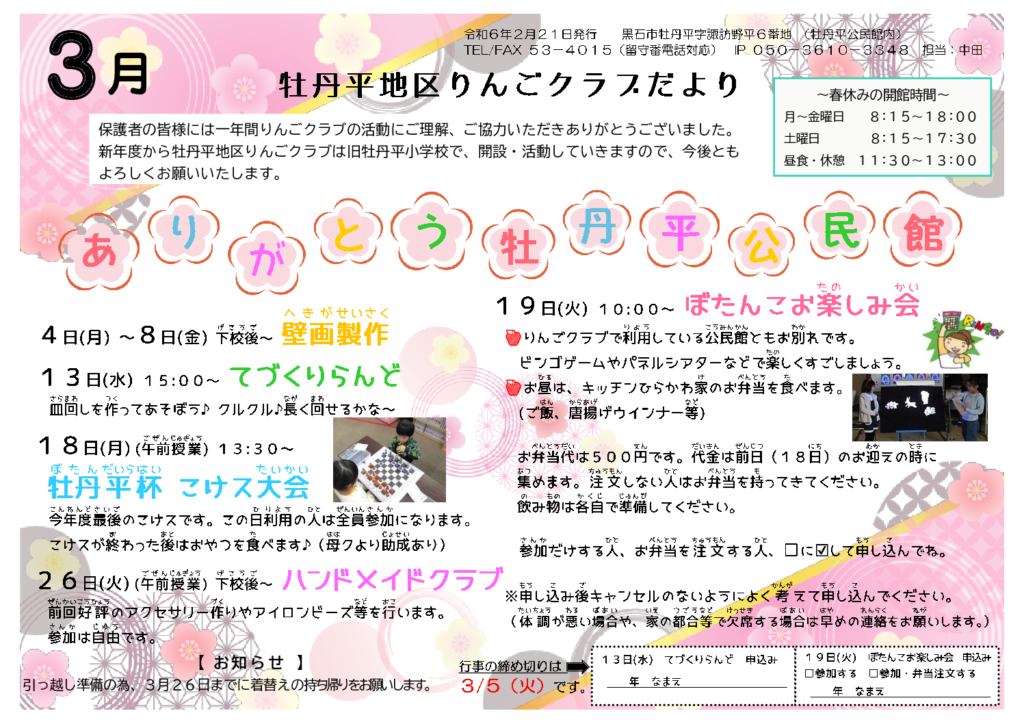 牡丹平地区りんごクラブだより令和6年3月号