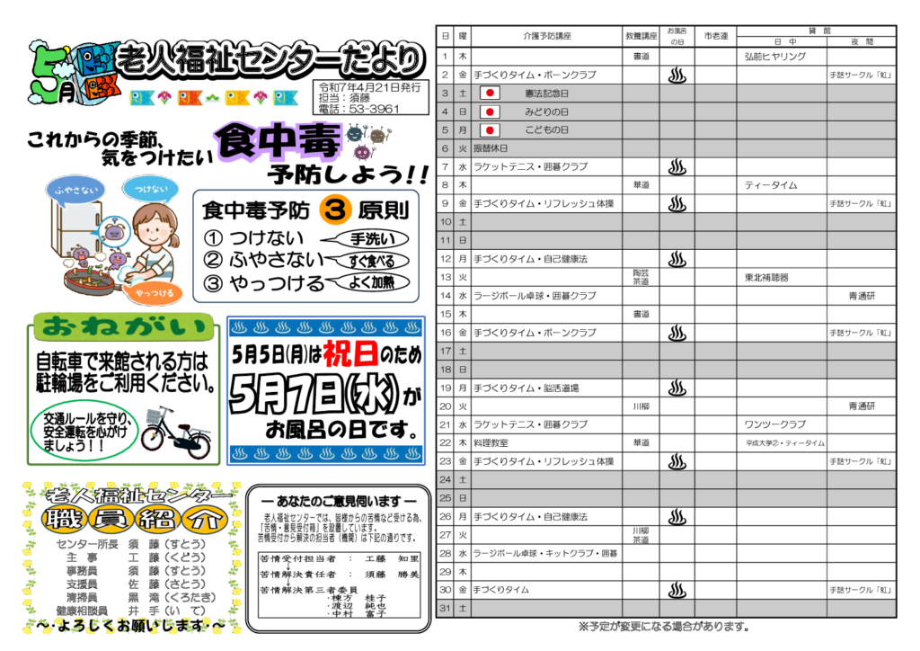 老人福祉センターだより令和7年5月号