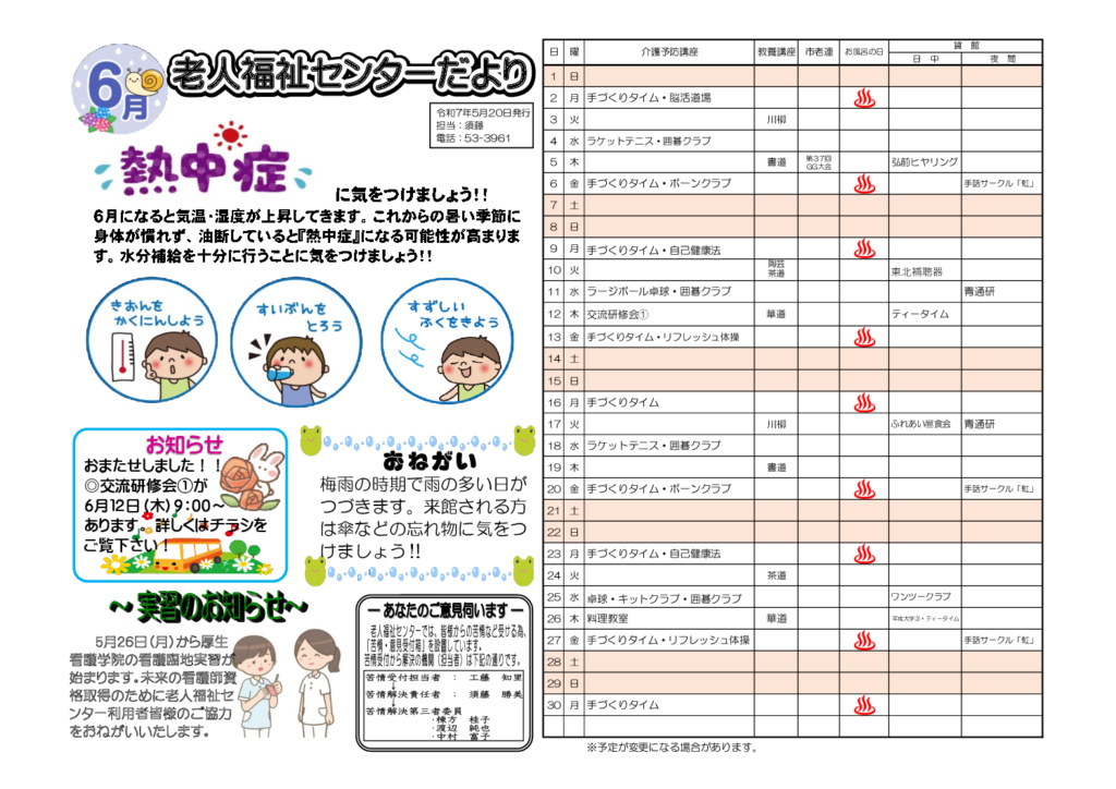 老人福祉センターだより令和7年6月号