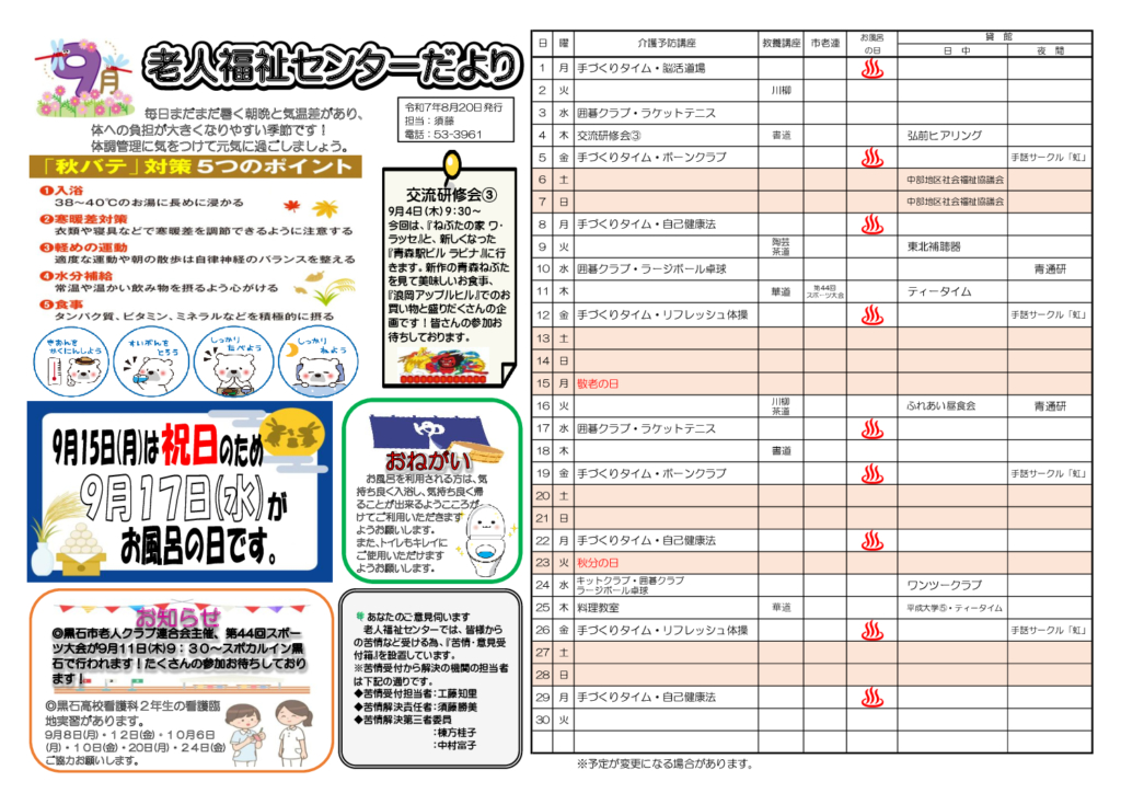 老人福祉センターだより令和7年9月号