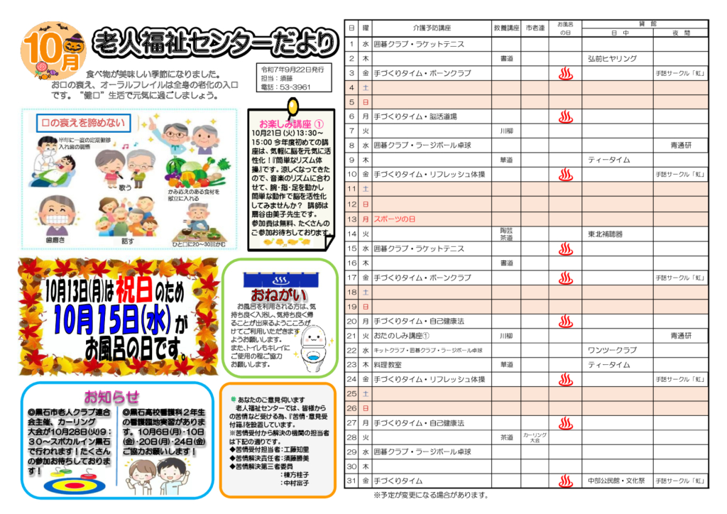 老人福祉センターだより令和7年10月号