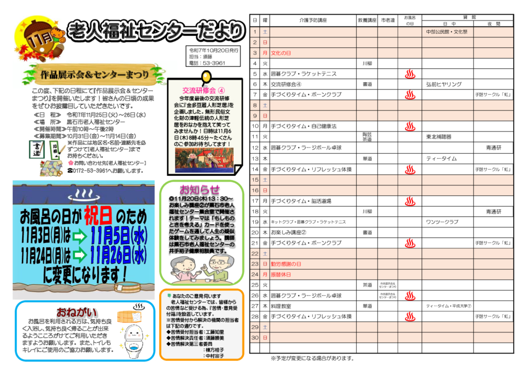 老人福祉センターだより令和7年11月号