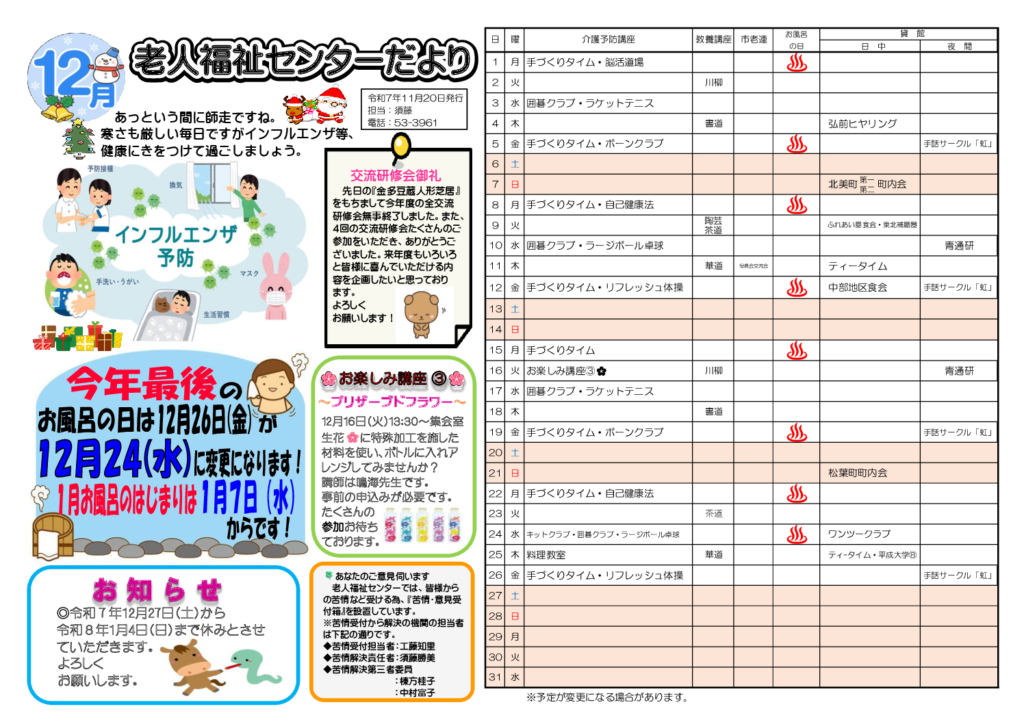 老人福祉センターだより令和7年12月号