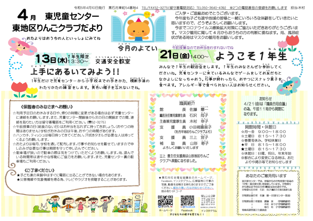 東児童センターだより令和5年4月号