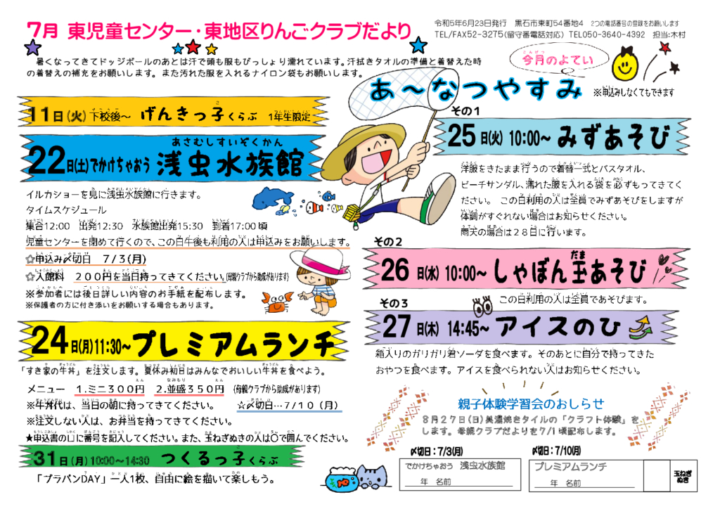 東児童センターだより令和5年7月号