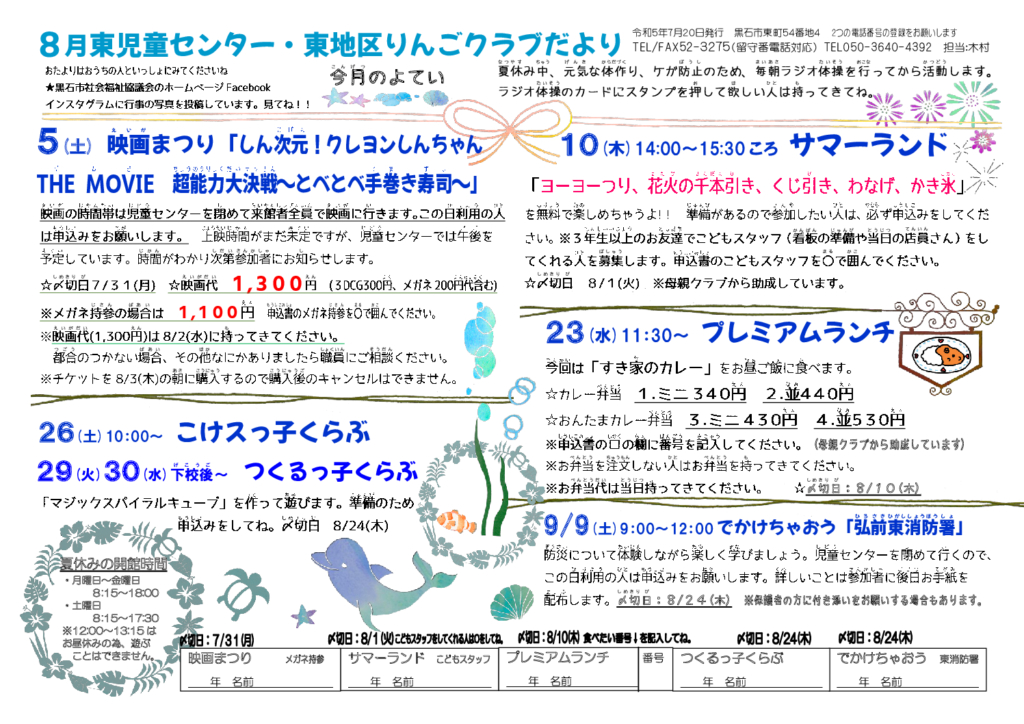 東児童センターだより令和5年8月号