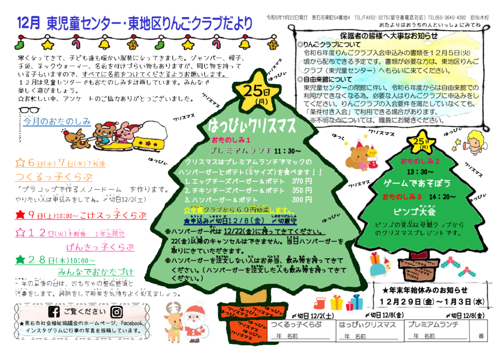 東児童センターだより令和5年12月号