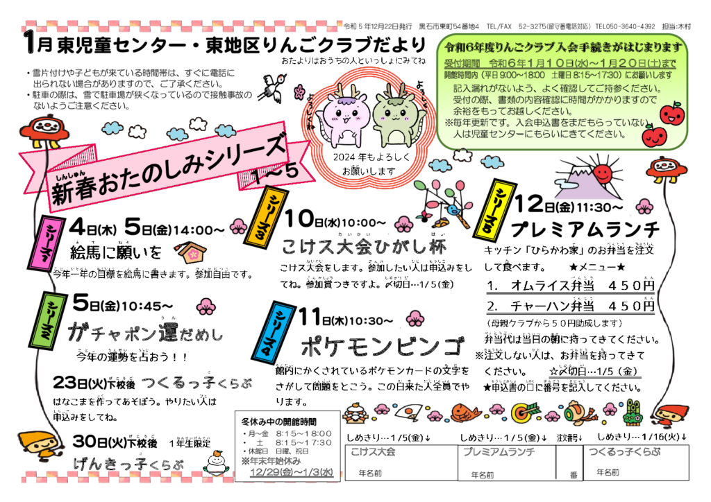東児童センターだより令和6年1月号