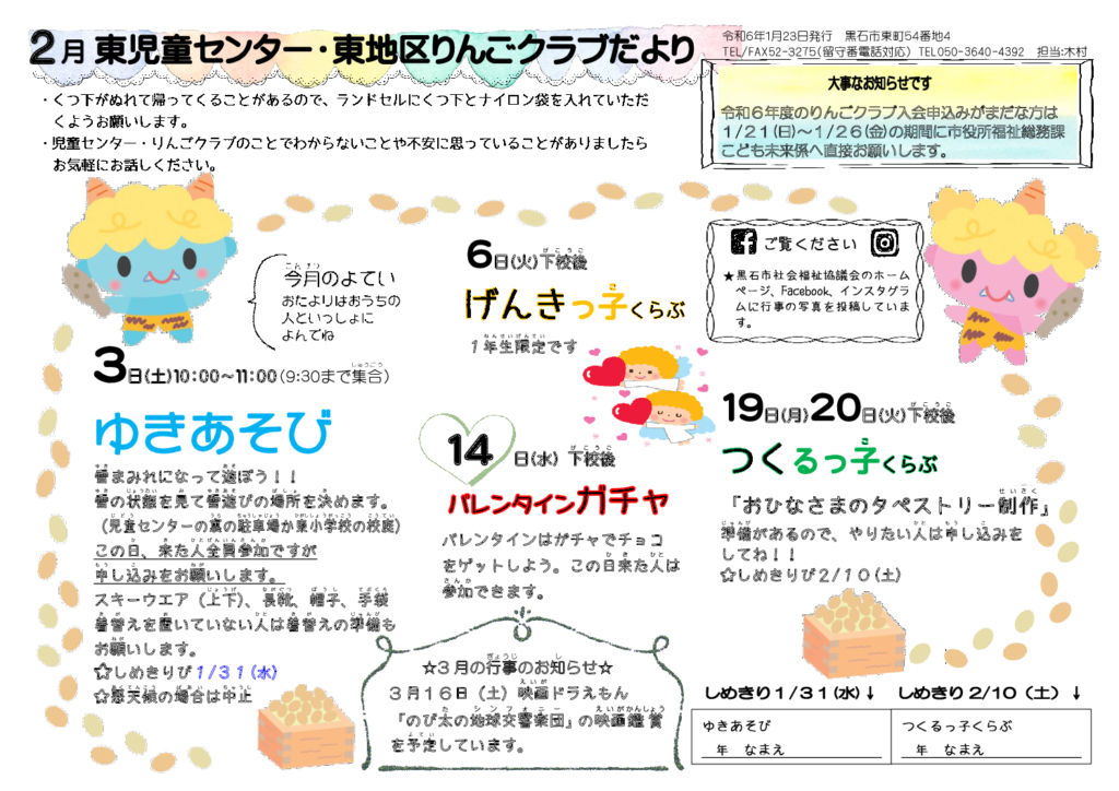 東児童センターだより令和6年2月号