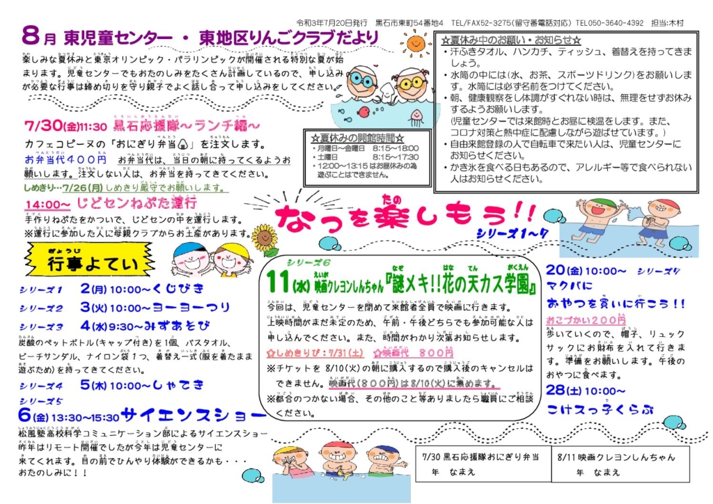 東児童センターだより令和3年8月号