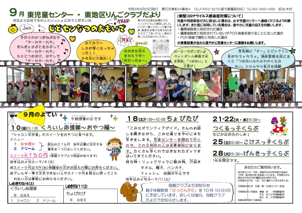 東児童センターだより令和3年9月号
