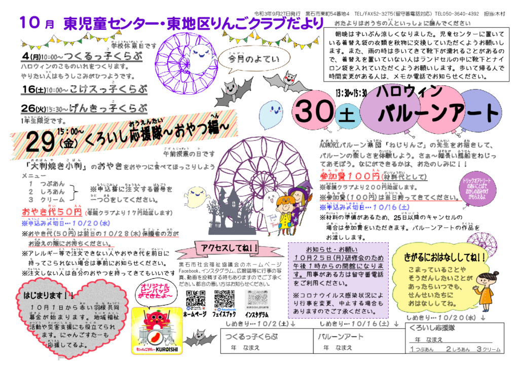 東児童センターだより令和3年10月号