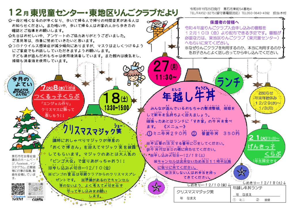 東児童センターだより令和3年12月号