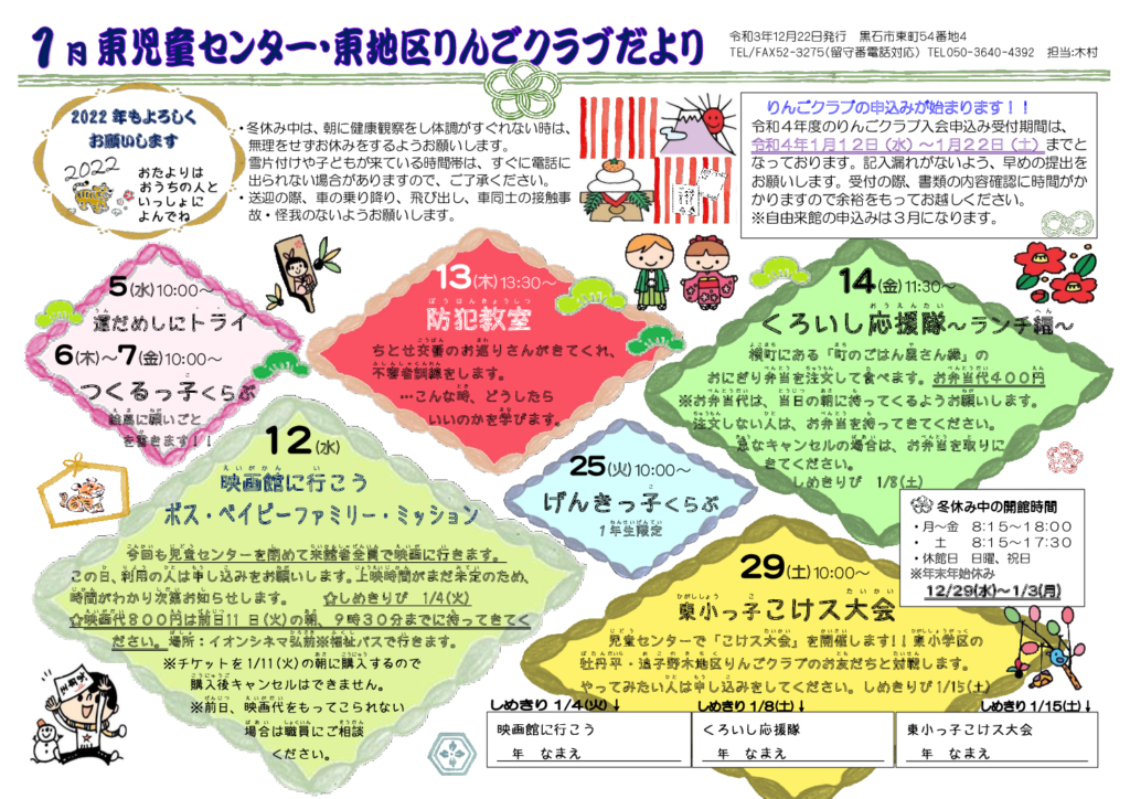東児童センターだより令和4年1月号