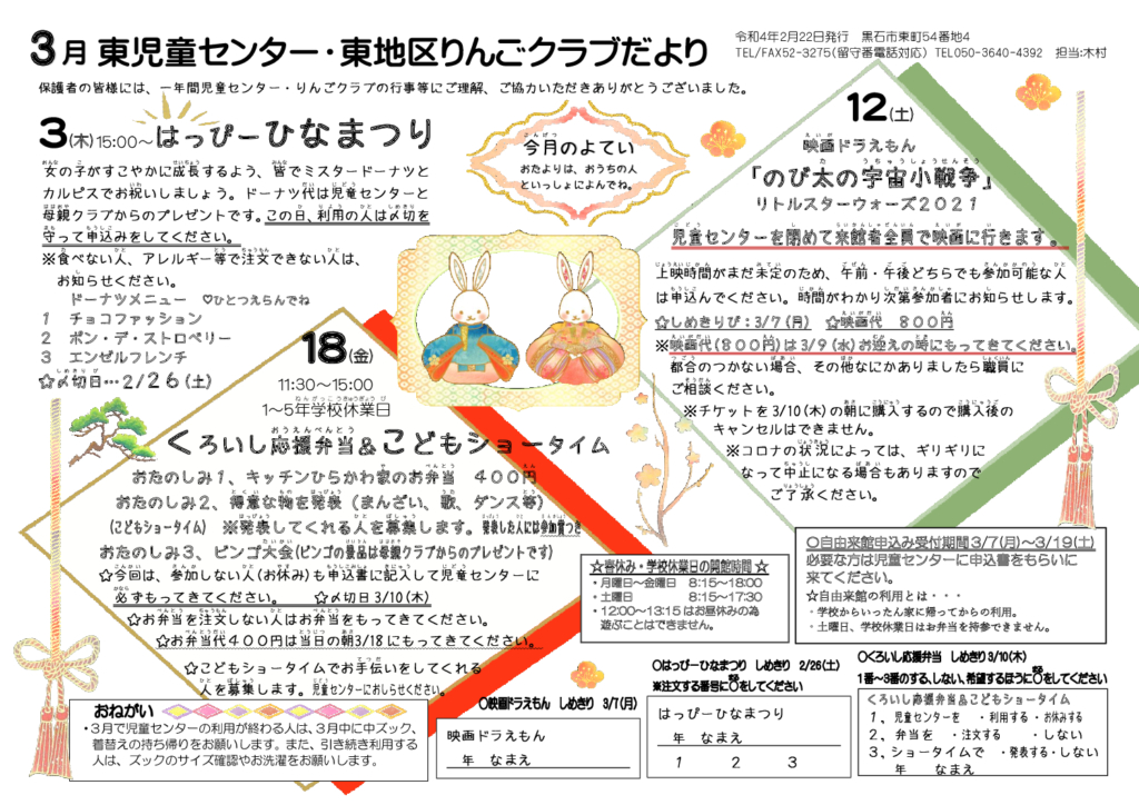 東児童センターだより令和4年3月号