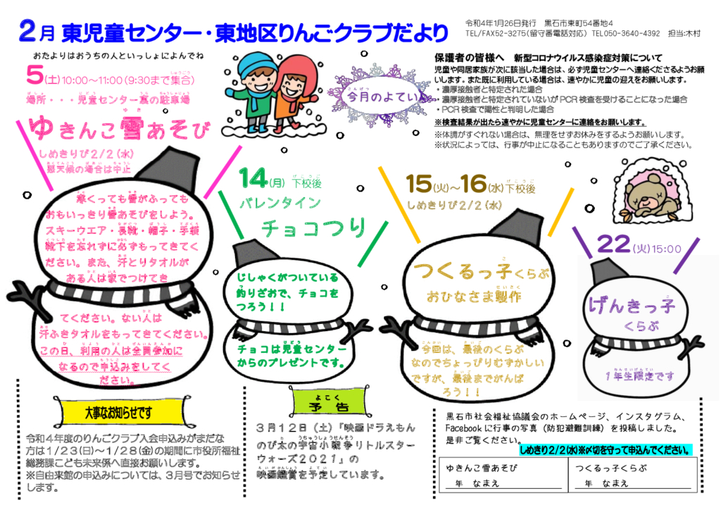東児童センターだより令和4年2月号