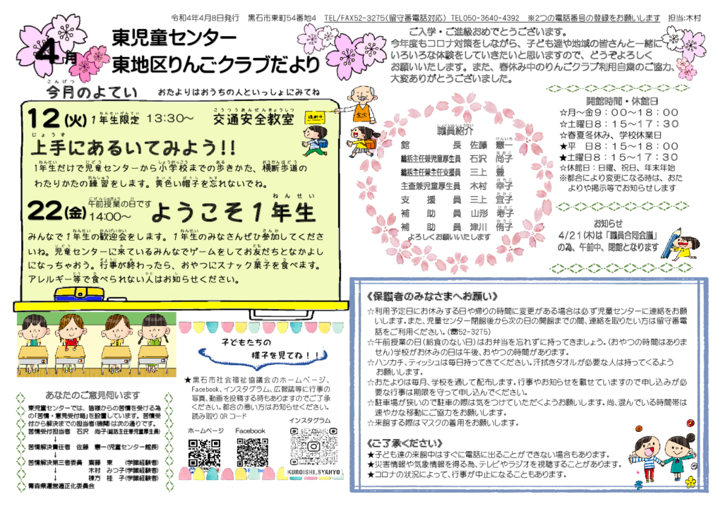 東児童センターだより令和4年4月号