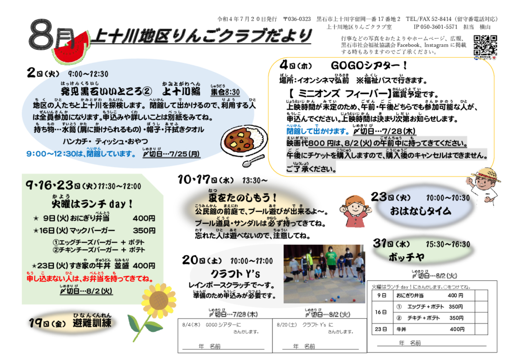 上十川地区りんごクラブだより令和4年8月号