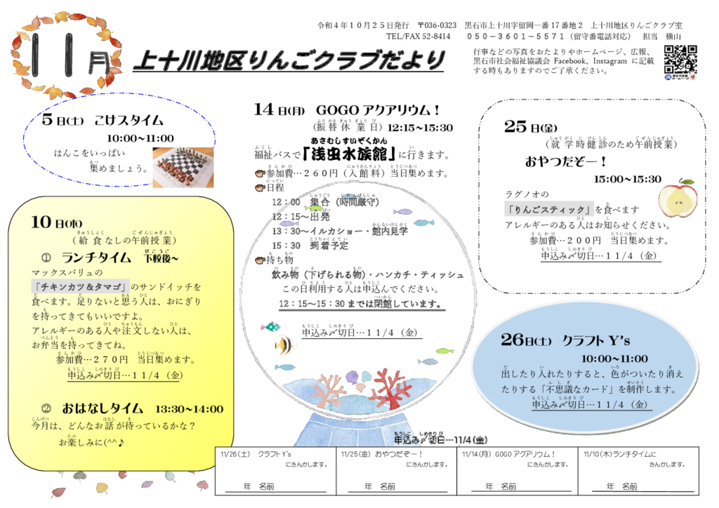 上十川地区りんごクラブだより令和4年11月号