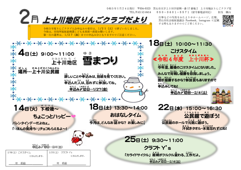上十川地区りんごクラブだより令和5年2月号