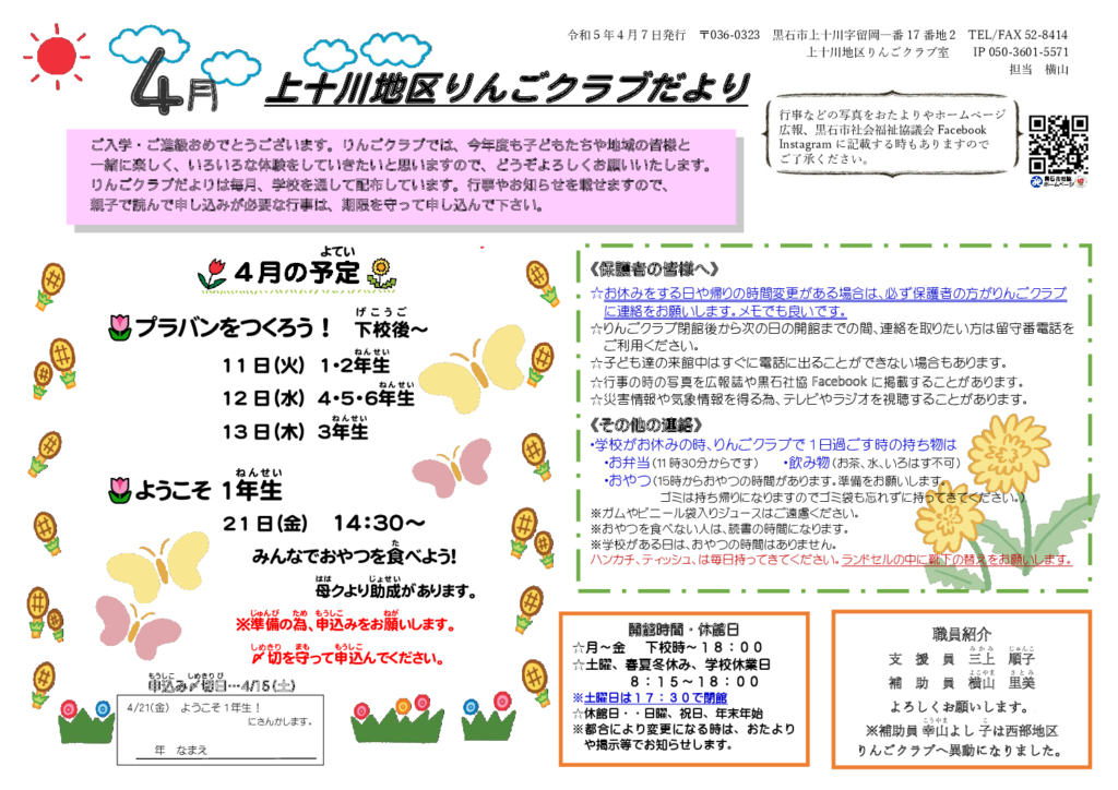 上十川地区りんごクラブだより令和5年4月号