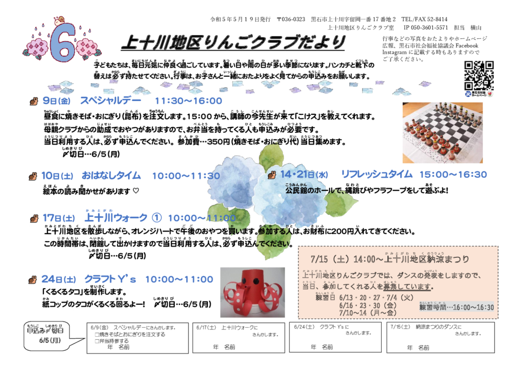 上十川地区りんごクラブだより令和5年6月号