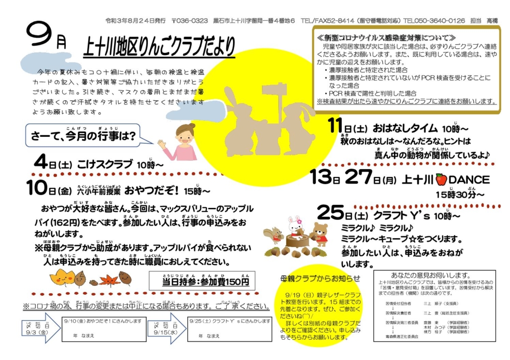 上十川地区りんごクラブだより令和3年9月号