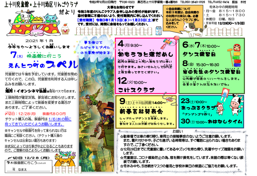 上十川児童館だより令和3年1月号