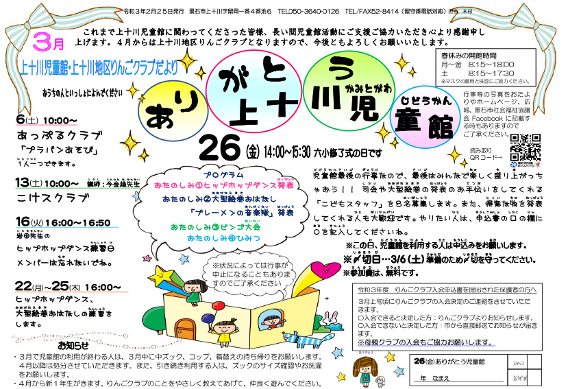 上十川児童館だより令和3年3月号
