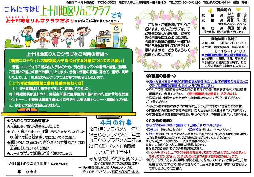 上十川地区りんごクラブだより令和3年4月号