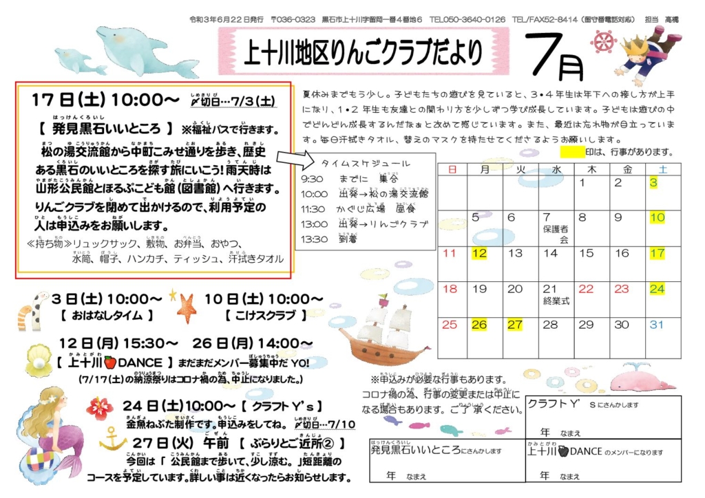 上十川地区りんごクラブだより令和3年7月号