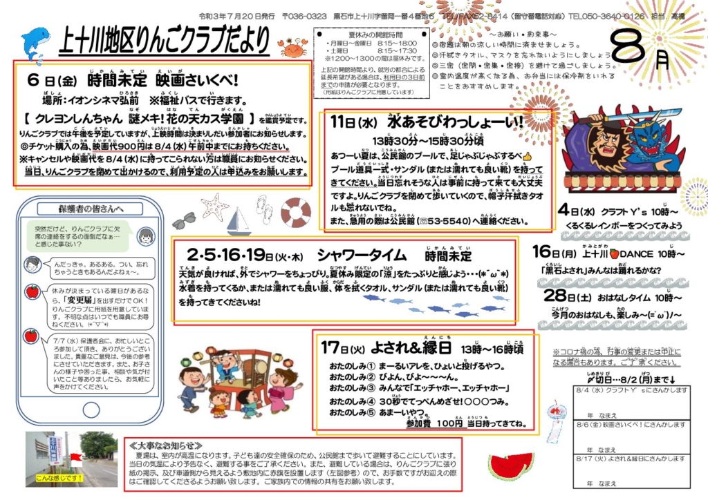 上十川地区りんごクラブだより令和3年8月号
