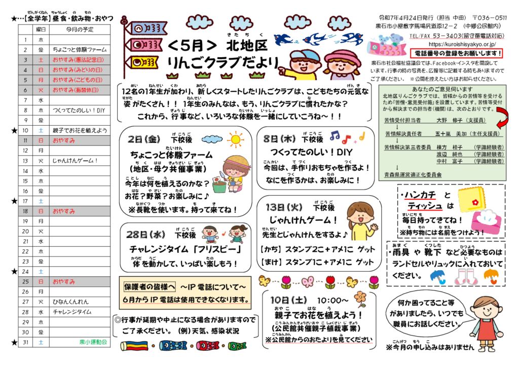 北地区りんごクラブだより令和7年5月号