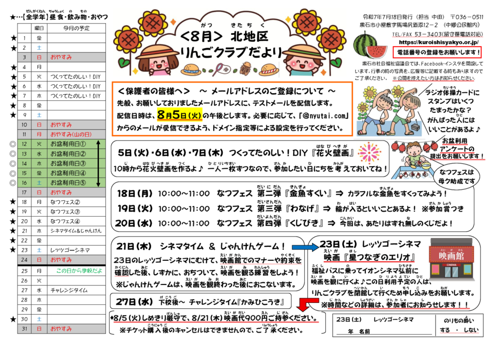 北地区児童センター– お便りコーナー –