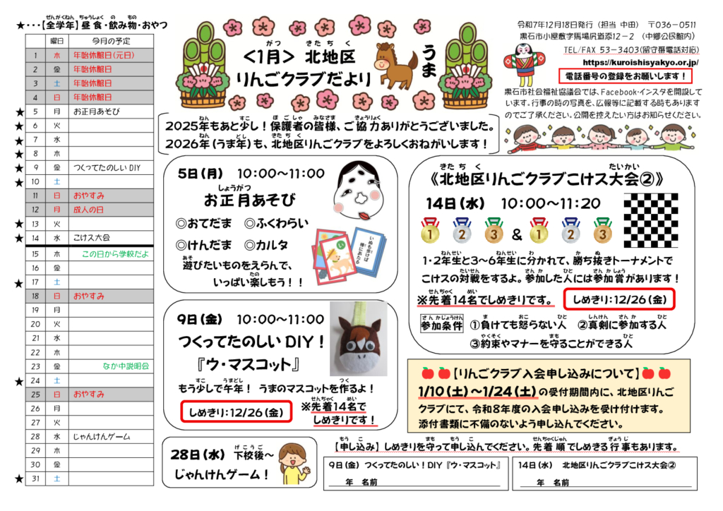 北地区りんごクラブだより令和8年1月号