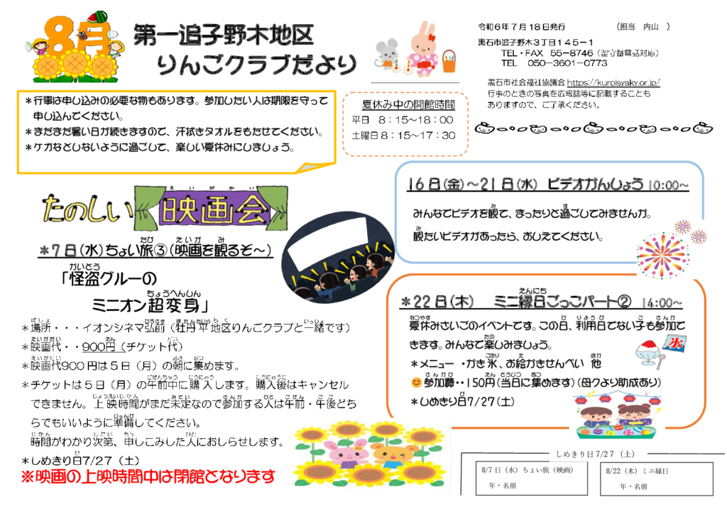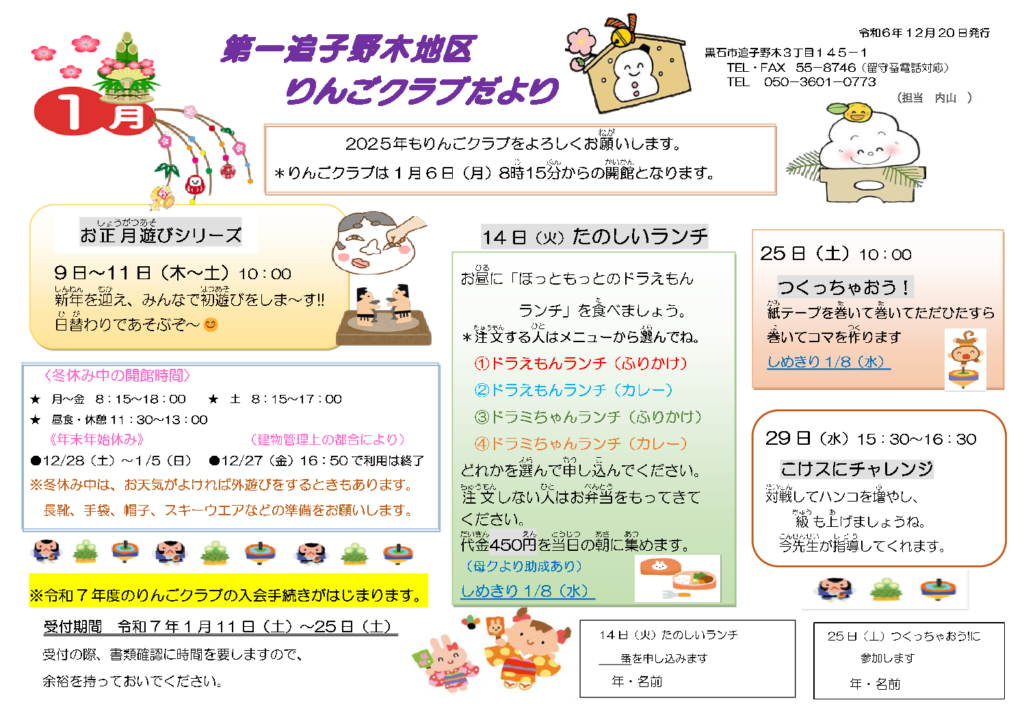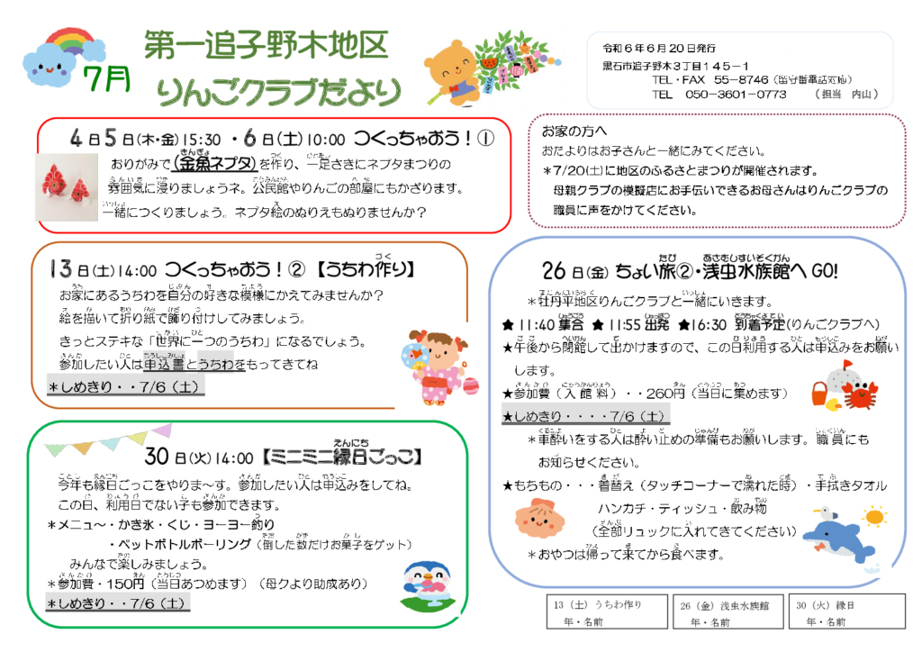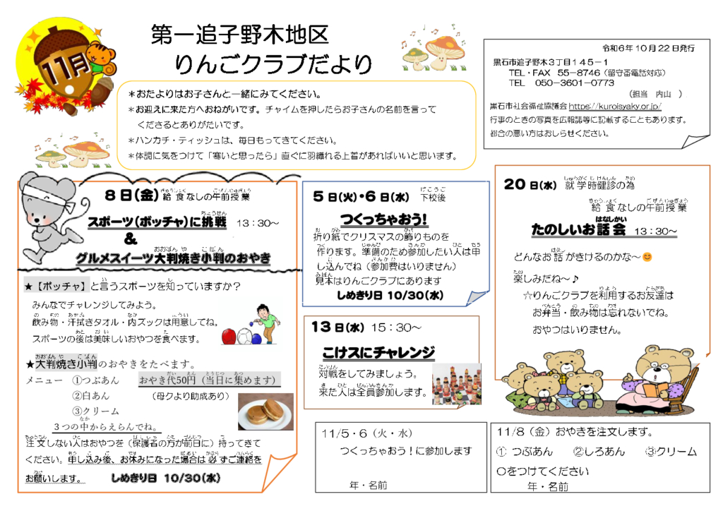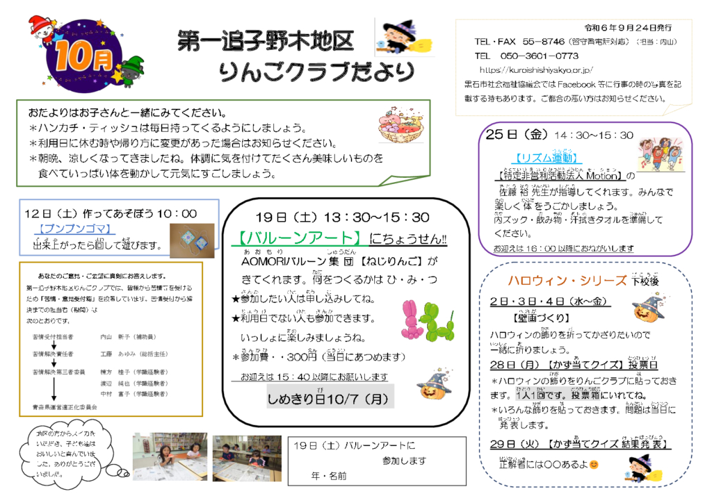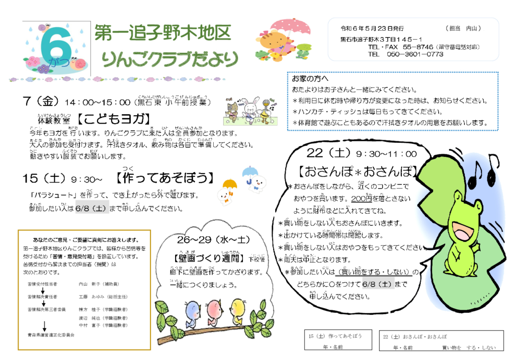 第一追子野木地区りんごクラブ– お便りコーナー –