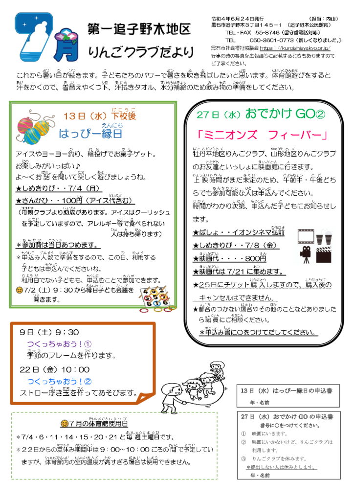 第一追子野木地区りんごクラブだより令和4年7月号