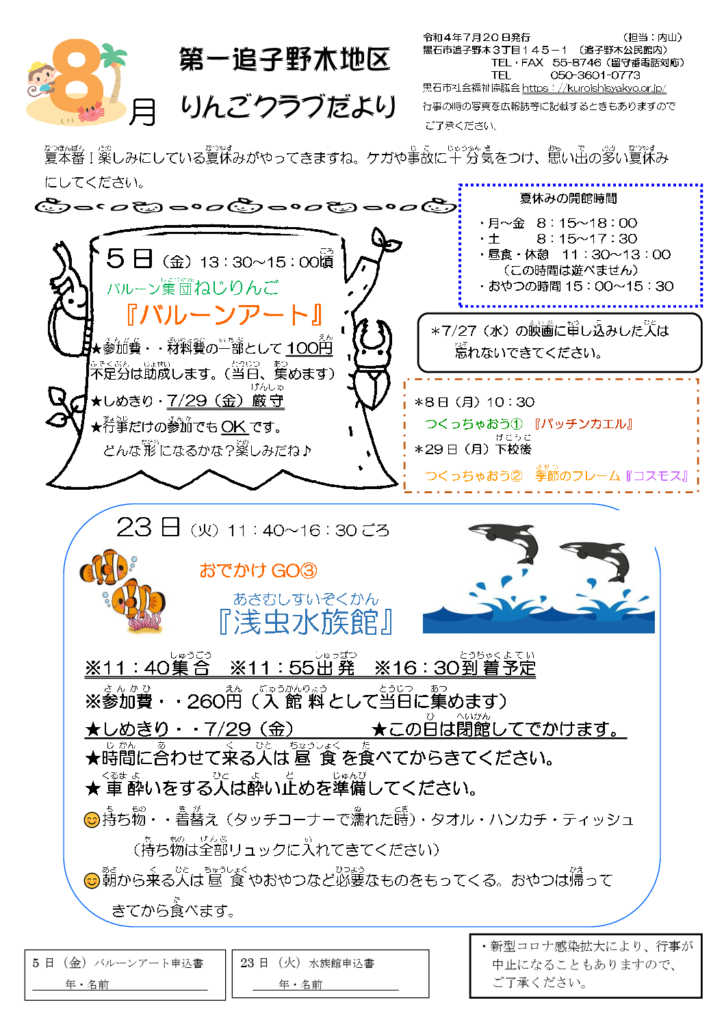 第一追子野木地区りんごクラブだより令和4年8月号