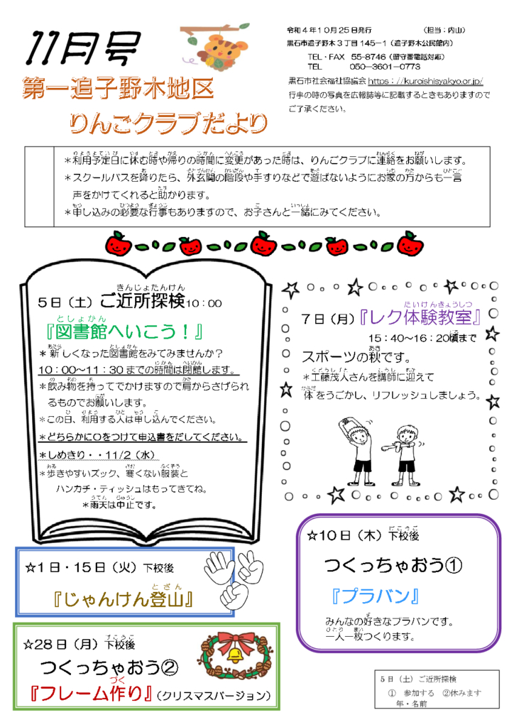 第一追子野木地区りんごクラブだより令和4年11月号
