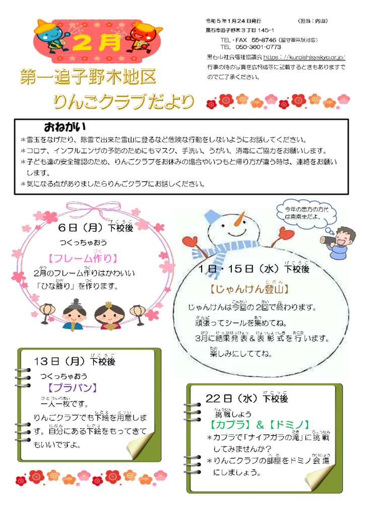 第一追子野木地区りんごクラブだより令和5年2月号